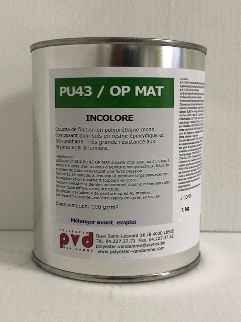 Application : Appliquer PU 43 OP MAT à partir d’un seau ou d’un bac à peinture à l’aide d’un rouleau à peinture non pelucheux. Répartir en forme de croix en exerçant une forte pression.